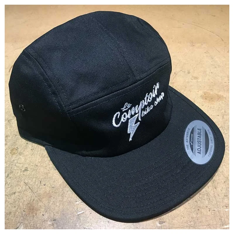 La Casquette LeComptoirBikeShop Snapback est une 5 panel taille unique et réglable pour porter haut les couleurs de votre shop préféré!